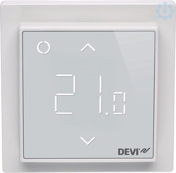Puristischer Timer-Thermostat mit Design-Einfachrahmen, Einstellung über WLAN App und Smart phone bzw Tablett. Passend zu verschiedenen Schalterprogrammen, patentierte Kompatibilität mit Einzel- und Mehrfachrahmen, kompatibel mit NTC-Bodenfühlern anderer Hersteller, patentiertes Aus- und Einlesen des Einstellungscodes für die Fernwartung, Betriebsspannung: 220-240 V 50/60 Hz, Leistungsaufnahme im Standby-Betrieb: < 400 mW, Relais ohmsche Last : 16 A/3680 W bei 230 V, induktive Last: cos Phi; = 0,3 max. 1 A, Fühlereinheit: NTC 15 kOhm bei 25 °C, galvanisch von der Spannungsversorgung getrennte Niederspannung, Regelung: PWM - Pulsweitenmodulation, Umgebungstemperatur: +5 bis +30 °C, Bodentemperaturgrenzwert: +10 bis +35 °C, Frostschutz: +5 °C (+5 bis +9 °C),Temperaturbereich: 5-35 °C (Raum) oder 5-35 °C (Fußboden), Absenktemperatur: 5 bis +30 °C, Lagerungstemperatur : -20 bis +65 °C, Gangreserve: Einstellungen: bleiben erhalten; Uhrzeit,Datum, Verbrauchszähler: 24 Stunden, Schutzart: IP 21, Abmessungen (H/B/T) zweiteiliger berührungssicherer Aufbau, Installiert (Designrahmen) : 85 mm × 85 mm × 44 mm, Oberteil: 67 mm × 67 mm × 22 mm, Farbe polarweiß RAL 9016