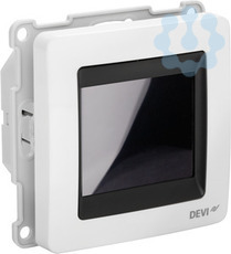 Touchscreen Timer-Thermostat ohne Einfachrahmen, Intuitive Bedienung, passend zu verschiedenen Schalterprogrammen, patentierte Kompatibilität mit Einzel- und Mehrfachrahmen, Einstellung je nach Raum- und Fußbodentyp (sicher bei Holzböden), optionale Einstellung per Code für Mehrfach-Installationen, kompatibel mit NTC-Bodenfühlern anderer Hersteller, patentiertes Aus- und Einlesen des Einstellungscodes für die Fernwartung, Betriebsspannung: 220-240 V 50/60 Hz, Leistungsaufnahme im Standby-Betrieb: < 400 mW, Relais ohmsche Last : 16 A/3680 W bei 230 V, induktive Last: cos Phi; = 0,3 max. 1 A, Fühlereinheit: NTC 15 kOhm bei 25 °C, galvanisch von der Spannungsversorgung getrennte Niederspannung, kompatibel mit anderen Fühlern, Regelung: PWM - Pulsweitenmodulation, Umgebungstemperatur: +5 bis +30 °C, Bodentemperaturgrenzwert: +10 bis +35 °C, Frostschutz: +5 °C (+5 bis +9 °C),Temperaturbereich: 5-35 °C (Raum) oder 5-35 °C (Fußboden), Absenktemperatur: 5 bis +30 °C, Lagerungstemperatur : -20 bis +65 °C, Gangreserve: Einstellungen: bleiben erhalten; Uhrzeit,Datum, Verbrauchszähler: 24 Stunden, Schutzart: IP 21, Abmessungen (H/B/T) zweiteiliger berührungssicherer Aufbau, Installiert (Designrahmen) : 85 mm × 85 mm × 44 mm, Oberteil: 67 mm × 67 mm × 22 mm, Farbe reinweiß RAL 9010