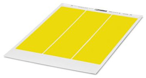 Etikettenbogen DIN-A4, Bogen, gelb, unbeschriftet, beschriftbar mit: PLOTMARK, CMS-P1-PLOTTER, Office-Drucksysteme, Montageart: kleben, Anzahl der Einzelschilder: 168, Textfeldhöhe: 11 mm, Textfeldbreite: 19 mm
