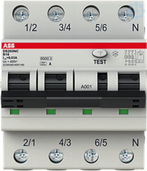 RCBO DS203NC A Typ A ist 3polig geschützt (LS), 4polig schaltend und kann in Dreiphasennetzen mit bzw. ohne N-Leiter eingesetzt werden.