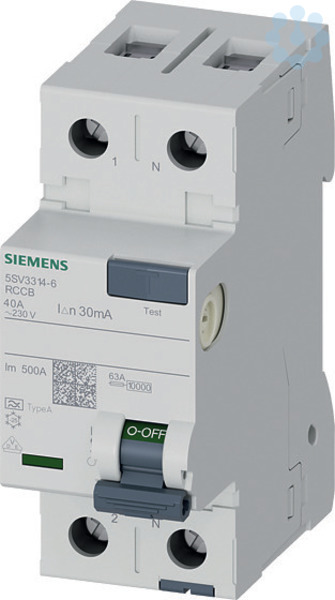 FI-Schutzschalter, 2-polig, Typ A, In: 40 A, 30 mA, Un AC: 230 V Fehlerstromschutzschalter SENTRON 5SV3 für den umfassenden Schutz für Personen und Sachwerte vor elektrischem Schlag. Die FI-Schutzschalter bieten zuverlässige Sicherheit bei der Installation durch den standardmäßig enthaltenen Umgreif- und Berührungsschutz. Mit der komfortablen Schieber-Hand-Betätigung können Sie die FI-Schutzschalter werkzeuglos von der Hutschiene bzw. aus dem Sammelschienenverbund lösen. Über den Datamatrix-Code am Gerät erhalten Sie schnellen Zugang zu allen technischen Daten in der Siemens Industry Online Support App. Die SENTRON Schutzschaltgeräte können mit dem durchgängigen Zubehör aus dem Systembaukasten um viele Funktionen erweitert werden. Optimale Technik für Ihre Sicherheit - nur von Siemens.