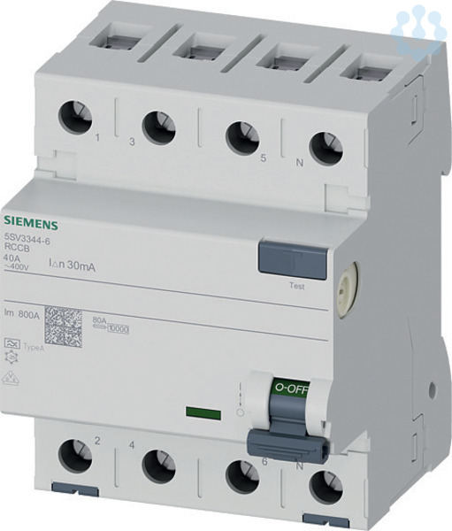 FI-Schutzschalter, 4-polig, Typ A, In: 40 A, 30 mA, Un AC: 400 V Fehlerstromschutzschalter SENTRON 5SV3 für den umfassenden Schutz für Personen und Sachwerte vor elektrischem Schlag. Die FI-Schutzschalter bieten zuverlässige Sicherheit bei der Installation durch den standardmäßig enthaltenen Umgreif- und Berührungsschutz. Mit der komfortablen Schieber-Hand-Betätigung können Sie die FI-Schutzschalter werkzeuglos von der Hutschiene bzw. aus dem Sammelschienenverbund lösen. Über den Datamatrix-Code am Gerät erhalten Sie schnellen Zugang zu allen technischen Daten in der Siemens Industry Online Support App. Die SENTRON Schutzschaltgeräte können mit dem durchgängigen Zubehör aus dem Systembaukasten um viele Funktionen erweitert werden. Optimale Technik für Ihre Sicherheit - nur von Siemens.