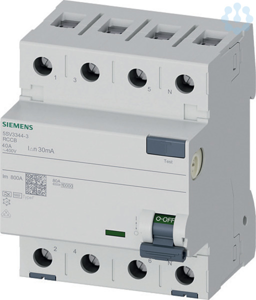 FI-Schutzschalter, 4-polig, Typ F, kurzzeitverzögert, In: 40 A, 30 mA, Un AC: 400 V Fehlerstromschutzschalter SENTRON 5SV3 für den umfassenden Schutz für Personen und Sachwerte vor elektrischem Schlag. Die FI-Schutzschalter bieten zuverlässige Sicherheit bei der Installation durch den standardmäßig enthaltenen Umgreif- und Berührungsschutz. Mit der komfortablen Schieber-Hand-Betätigung können Sie die FI-Schutzschalter werkzeuglos von der Hutschiene bzw. aus dem Sammelschienenverbund lösen. Über den Datamatrix-Code am Gerät erhalten Sie schnellen Zugang zu allen technischen Daten in der Siemens Industry Online Support App. Die SENTRON Schutzschaltgeräte können mit dem durchgängigen Zubehör aus dem Systembaukasten um viele Funktionen erweitert werden. Optimale Technik für Ihre Sicherheit - nur von Siemens.
