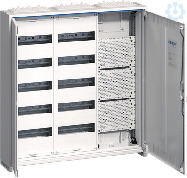Aufputz-Feldverteiler FWB53K1 mit r#obuster, geschlitzter Blechtür, Schutzklasse IP31 und SKII-Zertifizierung. Platz für Geräte bis 125A gemäß DIN EN 61 439-1/-3, Luft- & Kriechstreckenschutz nach DIN EN 60664-1. Flexibles 120 PLE Design für einfache Installation. Integriertes Multimediafeld. Einfache Montage dank QuickConnect-Klemmen. Innerer Berührungsschutz (SKII), vertikale Abschottung für Sicherheit. Tür mit einstellbaren Scharnieren. Mit Dreipunkt-Stangenverschluss.