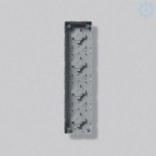 Unterputzgehäuse aus formstabilem Kunststoff, zur Befestigung des Montagerahmens MR 611-4/1-0 über Schnellverschraubungen.