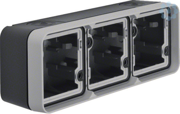 Gehäuseunterteil 3fach waagerecht mit Rahmen und Leitungseinf. AP W.1 grau