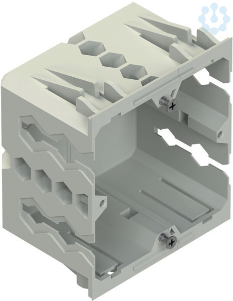 Geräteeinbaudose, einfach, frontrastend, vormontiert, bestehend aus linkem und rechtem Modul, zur Befestigung in der Deckelaufnahmekontur von Gerätekanälen, seitliche hexagonale Kabeldurchführöffnungen ermöglichen eine wirksame Kabelrückhaltung bei gängigen Leitungen wie NYM 3x1,5 mm² und NYM 3x2,5 mm², mit 60 mm Befestigungsspur, zur Aufnahme von Einbaugeräte mit 80 mm Abdeckrahmen, beliebig erweiterbar zu 2-, 3-, 4-fach usw. unter Verwendung des Erweiterungsmoduls GDMM 50 VW, halogenfrei. Der Querschnitt ca. 2702 mm² ist vom nutzbaren Querschnitt des Gerätekanals abzuziehen. Verwendung für : Gerätekanalunterteile GKU ..., DKU ... Pultkanalunterteile PGU ..., PLU ... Aluminiumkanalunterteile GAU ..., DAU ... Energiesäulen ESDB 133/..., ESED 133/..., ESDD 133/... Abmessungen (ca. Maße) Höhe H : 80 mm Breite B : 71 mm Tiefe T : 50 mm für Deckelöffnung : 78 mm Schutzart : IP20 Glühdrahtprüfung nach VDE 0471/DIN IEC 695 : 650°C Farbton : verkehrsweiß RAL : 9016 (ähnlich) Werkstoff Dosenkörper : PA (Polyamid), flammwidrig, selbstverlöschend Werkstoff Senkkopfschrauben : Stahl, galvanisch verzinkt