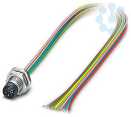 Gerätesteckverbinder Hinterwand, 8-polig, Stift, gerade, M8, A-Kodierung, auf freies Leitungsende, Einzellitzen, Kabellänge: 0,5 m, 0,14 mm², PVC-Litze