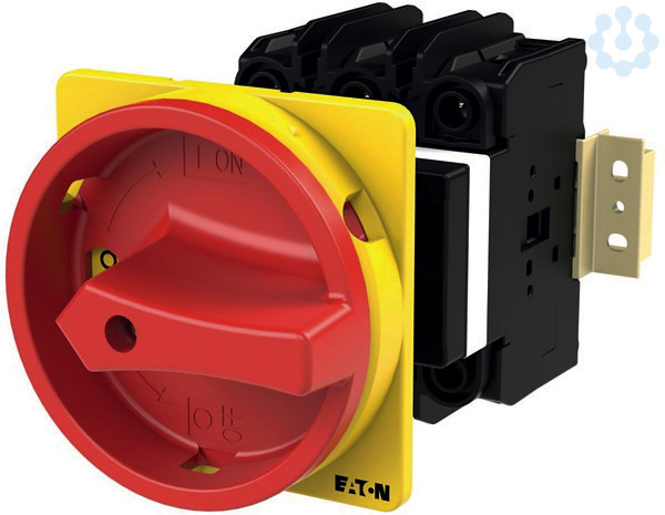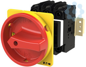 Hauptschalter, Sortiment: Hauptschalter, Wartungsschalter, Typkenner: P3, mit rotem Drehgriff und gelbem Sperrkranz, 3-polig, Verriegelungsvorrichtung: In der Position 0 (Aus) verriegelbar, Schutzart: Front IP65, Bauform: rückseitiger Einbau, Bemessungsdauerstrom: Iu = 30 A, Normen und Bestimmungen: UL489