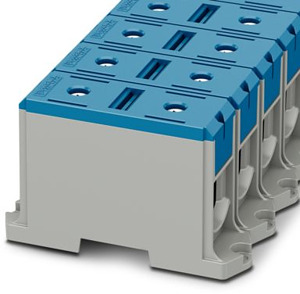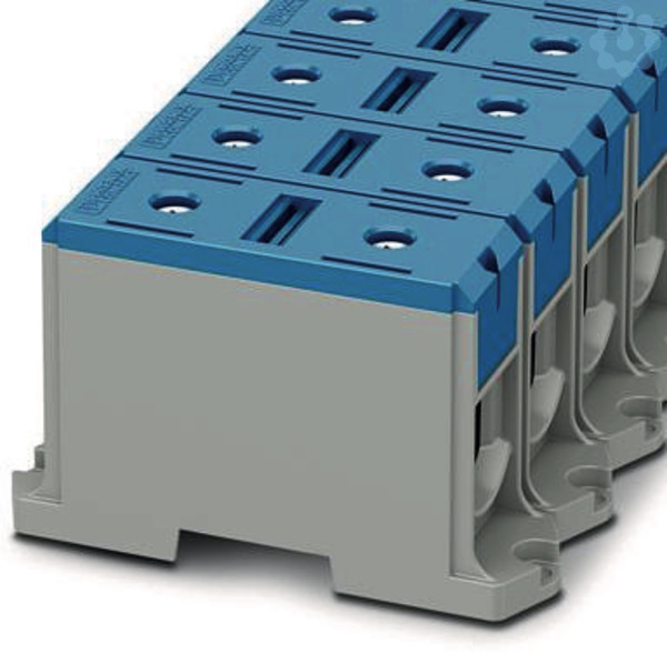 Hochstromklemme, Nennspannung: 1000 V, Nennstrom: 380 A, Anzahl der Anschlüsse: 2, Polzahl: 1, Anschlussart: Schraubanschluss, Bemessungsquerschnitt: 240 mm², Querschnitt: 35 mm² - 240 mm², Bemessungsquerschnitt: 240 mm², Querschnitt: 35 mm² - 240 mm², Montageart: Schraubmontage, Farbe: blau