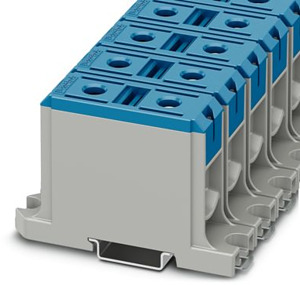 Hochstromklemme, Nennspannung: 1000 V, Nennstrom: 220 A, Anzahl der Anschlüsse: 2, Polzahl: 1, Anschlussart: Schraubanschluss, Bemessungsquerschnitt: 95 mm², Querschnitt: 16 mm² - 95 mm², Bemessungsquerschnitt: 95 mm², Querschnitt: 16 mm² - 95 mm², Montageart: NS 35/15, NS 35/7,5, Farbe: blau