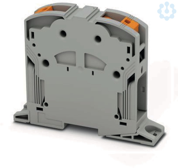 Hochstromklemme, Nennspannung: 1000 V, Nennstrom: 309 A, Anzahl der Anschlüsse: 2, Polzahl: 1, Anschlussart: PowerTurn-Anschluss, 1. Etage, Querschnitt: 95 mm² - 185 mm², Montageart: direktes Anschrauben, Farbe: grau