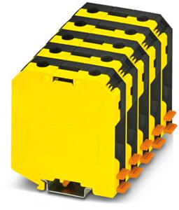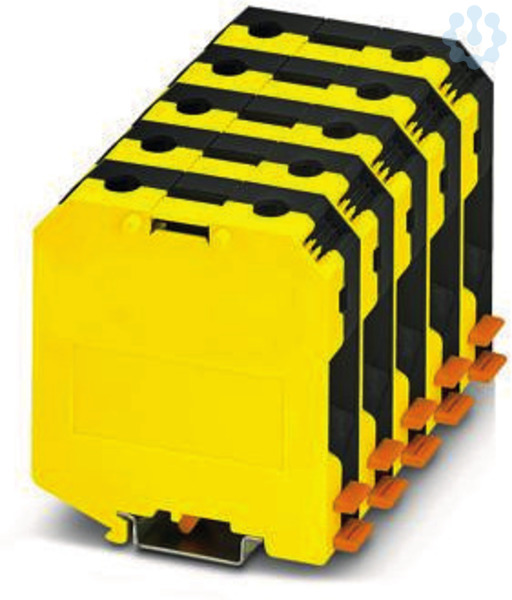 Hochstromklemme, mit Innensechskantschrauben, Nennspannung: 1000 V, Nennstrom: 150 A, Anzahl der Anschlüsse: 2, Polzahl: 1, Anschlussart: Schraubanschluss, Querschnitt: 16 mm² - 70 mm², Montageart: NS 35/7,5, NS 35/15, NS 32, NS 35/15-2,3, Farbe: schwarz/gelb