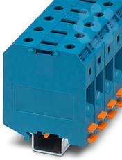 Hochstromklemme, mit Innensechskantschrauben, Nennspannung: 1000 V, Nennstrom: 150 A, Anzahl der Anschlüsse: 2, Polzahl: 1, Anschlussart: Schraubanschluss, Querschnitt: 16 mm² - 70 mm², Montageart: NS 35/7,5, NS 35/15, NS 32, NS 35/15-2,3, Farbe: blau
