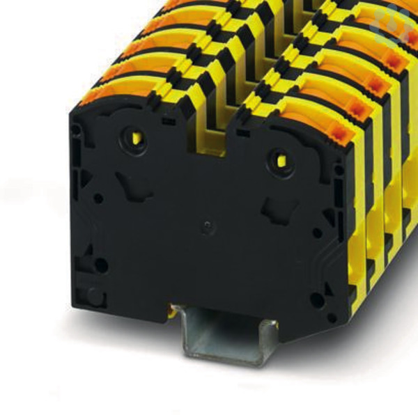 Hochstromklemme, Nennspannung: 1000 V, Nennstrom: 125 A, Anzahl der Anschlüsse: 2, Polzahl: 1, Anschlussart: PowerTurn-Anschluss, Bemessungsquerschnitt: 35 mm², Querschnitt: 2,5 mm² - 35 mm², Montageart: NS 35/15, Farbe: schwarz/gelb