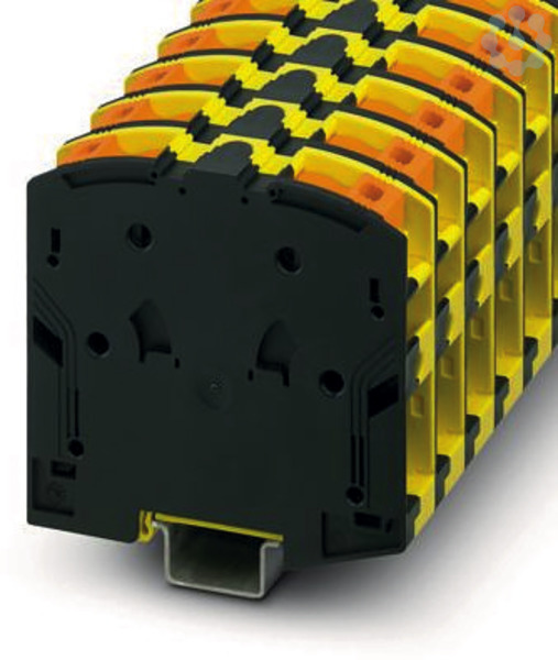 Hochstromklemme, Nennspannung: 1000 V, Nennstrom: 232 A, Anzahl der Anschlüsse: 2, Polzahl: 1, Anschlussart: PowerTurn-Anschluss, Querschnitt: 25 mm² - 95 mm², Montageart: NS 35/15, Farbe: schwarz/gelb