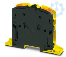 Hochstromklemme, Nennspannung: 1000 V, Nennstrom: 232 A, Anzahl der Anschlüsse: 2, Polzahl: 1, Anschlussart: PowerTurn-Anschluss, Querschnitt: 25 mm² - 95 mm², Montageart: direktes Anschrauben, Farbe: schwarz/gelb