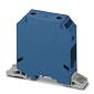 Hochstromklemme, Nennspannung: 1000 V, Nennstrom: 232 A, Anzahl der Anschlüsse: 2, Polzahl: 1, Anschlussart: Schraubanschluss, Bemessungsquerschnitt: 95 mm², Querschnitt: 25 mm² - 95 mm², Montageart: direktes Anschrauben, Farbe: blau
