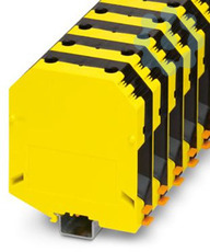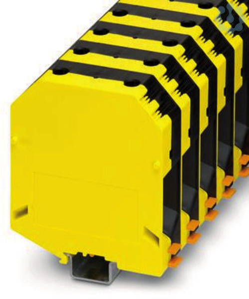 Hochstromklemme, Nennspannung: 1000 V, Nennstrom: 309 A, Anzahl der Anschlüsse: 2, Anschlussart: Schraubanschluss, Bemessungsquerschnitt: 150 mm², Querschnitt: 35 mm² - 150 mm², Montageart: NS 35/15, NS 32, Farbe: schwarz/gelb