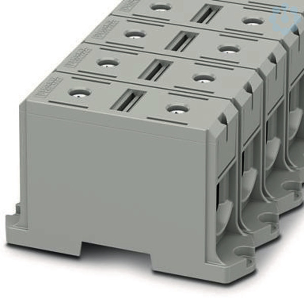 Hochstromklemme, Nennspannung: 1000 V, Nennstrom: 380 A, Anzahl der Anschlüsse: 2, Polzahl: 1, Anschlussart: Schraubanschluss, Bemessungsquerschnitt: 240 mm², Querschnitt: 35 mm² - 240 mm², Bemessungsquerschnitt: 240 mm², Querschnitt: 35 mm² - 240 mm², Montageart: Schraubmontage, Farbe: grau