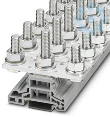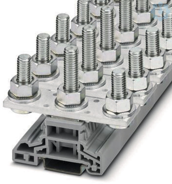 Hochstromverbinder, Nennspannung: 1000 V, Nennstrom: 269 A, Anzahl der Anschlüsse: 2, Anschlussart: Bolzenanschluss, Bemessungsquerschnitt: 120 mm², Montageart: NS 35/7,5, NS 35/15, Farbe: grau
