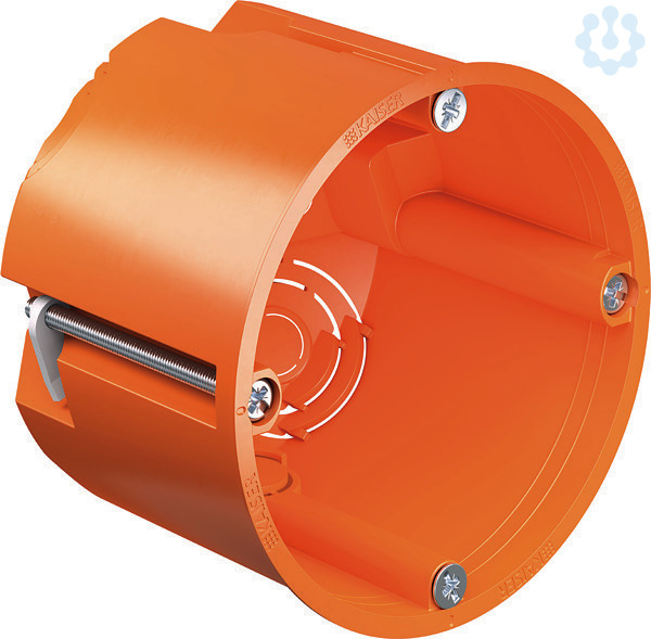 Geräte-Verbindungsdose O-range®, Tiefe 62 mm (9064-02). Die neuen KAISER Hohlwand Installationsdosen mit bewährter Laschen-Befestigungstechnik und verbesserten Produktmerkmalen. Eine praxisgerechte Bauform und eine gezielte Auswahl an Leitungs- und Rohreinführungen ermöglichen eine Vielzahl an Nutzungsmöglichkeiten. Zusätzliche Dosen für Sonderanwendungen wie den Einbau in dünn beplankte Wände oder Wände aus Massivholz runden das vielfältige Sortiment ab. Die VDE Zertifizierung dokumentiert dabei den hohen Qualitätsanspruch. Fräsloch Ø: 68 mm | Tiefe: 62 mm