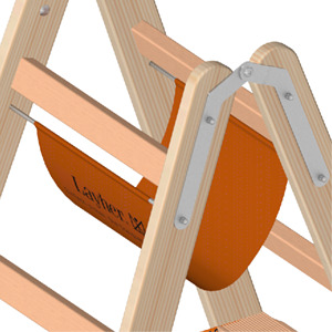 Die klassische Handwerkerleiter. Beidseitig begehbar, mit Werkzeugtasche, Spreizsicherung durch 2 reißfeste Polyester-Gurtbänder, robust konstruierte und verzinkte Stahlscharniere mit Eimerhaken, Transportsicherung aus Holz am Leiterfuß. Holme aus massivem Kiefernholz. Sprossen aus stabilem Buchenholz. Durch die speziellen Vierkantzapfen und ein besonderes Verfahren bei der Verklebung ist eine dauerhaft unlösbare Holm-Sprossenverbindung gegeben.
