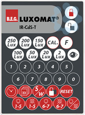 Infrarot-Fernbedienung zum komfortablen Einstellen oder Ändern der Parameter, Inklusive Wandhalterung, Einfache Programmierung des Dämmerungsschalters CdS-T-AP und der Automatikleuchte AL5-RC-plus next in Kombination mit Dämmerungsschalter CdS-T-AP