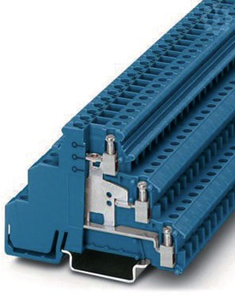 Initiatoren-/Aktorenklemme, mit Potenzialverbinder, Nennspannung: 250 V, Nennstrom: 24 A, Anschlussart: Schraubanschluss, 1., 2. und 3. Etage, Bemessungsquerschnitt: 2,5 mm², Querschnitt: 0,2 mm² - 4 mm², Montageart: NS 35/7,5, NS 35/15, Farbe: blau