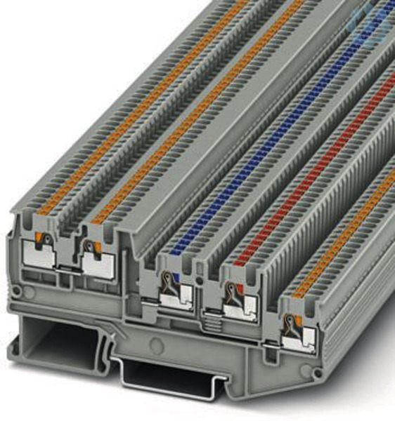 Initiatoren-/Aktorenklemme, Nennspannung: 250 V, Nennstrom: 13,5 A, Anzahl der Anschlüsse: 5, Anschlussart: Push-in-Anschluss, Bemessungsquerschnitt: 1,5 mm², Querschnitt: 0,14 mm² - 1,5 mm², Montageart: NS 35/7,5, NS 35/15, Farbe: grau