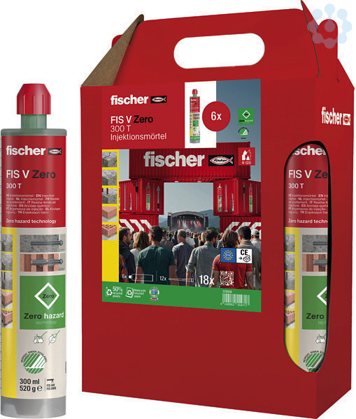 Sichern Sie sich jetzt den FIS V Zero 300 T im praktischen Sixpack für einen komfortablen Transport. Der Universalmörtel FIS V Zero 300 T ist umweltschonend und ermöglicht eine sichere Verarbeitung. Harz und Härter werden erst beim Auspressen aus dem Statikmischer vermischt und aktiviert. Er ist für Verankerungen in Beton und Mauerwerk, nachträgliche Bewehrungsanschlüsse und wassergefüllte Bohrlöcher, sowie die Installation bei Temperaturen von -10 bis 40°C zugelassen. Der Mörtel bietet sicheren Halt in gängigen Baustoffen und erfüllt höchste Arbeitsschutzanforderungen. Außerdem ist er gemäß CLP-Verordnung als "kennzeichnungsfrei" eingestuft. Angebrochene Kartuschen können durch Statikmischerwechsel wiederverwendet werden und nach Verbrauch einfach im Hausmüll entsorgt werden.