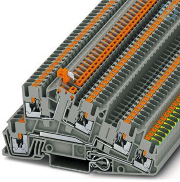 Installations-Schutzleiterklemme, Nennspannung: 400 V, Nennstrom: 24 A, Push-in-Anschluss, 1. und 2. Etage, Bemessungsquerschnitt: 2,5 mm², Querschnitt: 0,14 mm² - 4 mm², Push-in-Anschluss, 3. Etage, Bemessungsquerschnitt: 1,5 mm², Querschnitt: 0,14 mm² - 4 mm², Montageart: NS 35/7,5, NS 35/15, Farbe: grau