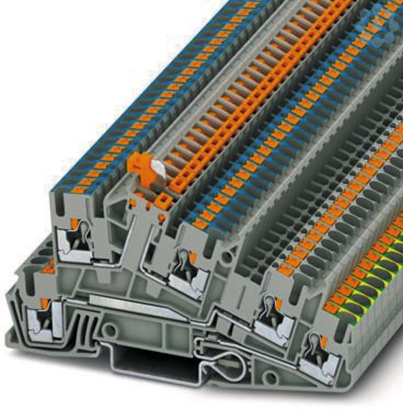 Installations-Schutzleiterklemme, Nennspannung: 400 V, Nennstrom: 24 A, Push-in-Anschluss, 1. und 2. Etage, Bemessungsquerschnitt: 2,5 mm², Querschnitt: 0,14 mm² - 4 mm², Push-in-Anschluss, 3. Etage, Bemessungsquerschnitt: 1,5 mm², Querschnitt: 0,14 mm² - 4 mm², Montageart: NS 35/7,5, NS 35/15, Farbe: grau