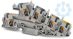 Installations-Schutzleiterklemme, Nennspannung: 400 V, Nennstrom: 28 A, Push-in-Anschluss, 1., 2. und 3. Etage, Bemessungsquerschnitt: 4 mm², Querschnitt: 0,2 mm² - 6 mm², Montageart: NS 35/7,5, NS 35/15, Farbe: grau