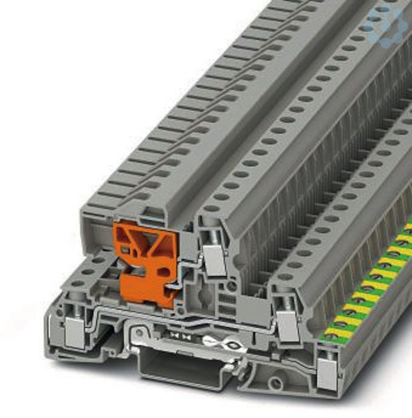 Installations-Schutzleiterklemme, Nennspannung: 400 V, Nennstrom: 38 A, Schraubanschluss, 1. Etage, Bemessungsquerschnitt: 6 mm², Querschnitt: 0,2 mm² - 10 mm², Montageart: NS 35/7,5, NS 35/15, Farbe: grau