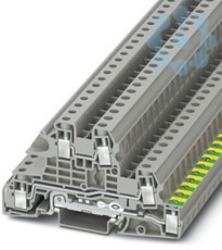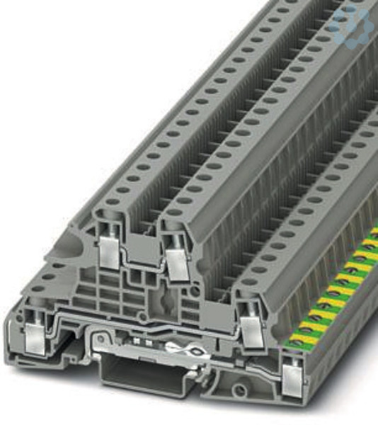 Installations-Schutzleiterklemme, Nennspannung: 400 V, Nennstrom: 38 A, Schraubanschluss, 1., 2. und 3. Etage, Bemessungsquerschnitt: 6 mm², Querschnitt: 0,2 mm² - 10 mm², Montageart: NS 35/7,5, NS 35/15, Farbe: grau