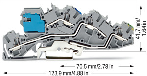 Die Installationsetagenklemme (Artikelnummer 2005-7641) ermöglicht einen schnellen und sicheren Anschluss. Für den Leiteranschluss werden bei dieser Installationsetagenklemme Abisolierlängen von 11 bis 13 mm benötigt. Dieses Produkt ist mit der Push-in CAGE CLAMP®-Technologie ausgerüstet. Push-in CAGE CLAMP® ist der wartungsfreie Universalanschluss für alle Leiterarten mit dem Zusatznutzen des direkten Steckens: Push-in. Starre Leiter sowie feindrähtige Leiter mit Aderendhülse können ohne Werkzeug direkt gesteckt werden. Eine Vorbehandlung der Leiter, z.B. durch das Aufcrimpen von Aderendhülsen, ist nicht erforderlich. In Abhängigkeit von der Leiterart eignet sich die Installationsetagenklemme für Leiterquerschnitte von 0,5 mm² bis 6 mm².