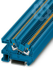 Installationsklemme, Nennspannung: 800 V, Nennstrom: 24 A, Push-in-Anschluss, 1. Etage, Bemessungsquerschnitt: 2,5 mm², Querschnitt: 0,14 mm² - 4 mm², Montageart: NS 35/7,5, NS 35/15, Farbe: blau
