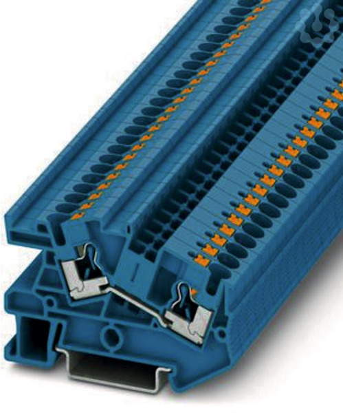 Installationsklemme, Nennspannung: 800 V, Nennstrom: 32 A, Push-in-Anschluss, 1. Etage, Bemessungsquerschnitt: 4 mm², Querschnitt: 0,2 mm² - 6 mm², Montageart: NS 35/7,5, NS 35/15, Farbe: blau