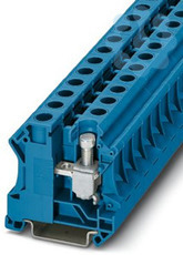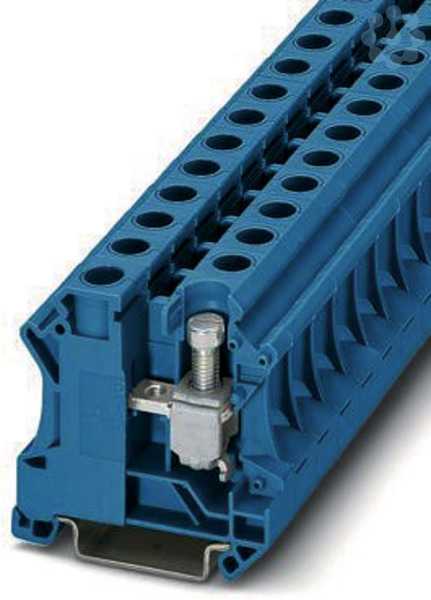 Installationsklemme, Nennspannung: 400 V, Nennstrom: 76 A, Schraubanschluss, 1. Etage Anschluss rechts, Bemessungsquerschnitt: 16 mm², Querschnitt: 6 mm² - 25 mm², Montageart: NS 35/7,5, NS 35/15, Farbe: blau