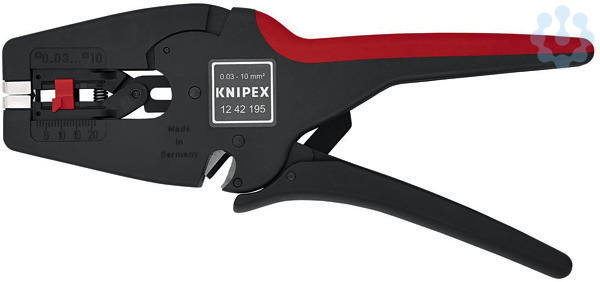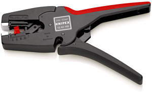12 42 195 SB KNIPEX MultiStrip 10 Abisolieren ohne Nachjustieren von 0,03 bis 10,0 mm² (nur bei konstanten Temperaturen). vertieft liegender Drahtschneider. Durch dauerhafte Prozessicherheit auch für industriellen Einsatz empfohlen. Vollautomatische Anpassung an feindrähtige Leiter mit Standard-Isolierung im gesamten Kapazitätsbereich von 0,03 bis 10,0 mm². Universelle Messergeometrie – robust und langlebig. Mit vertieft liegendem Drahtschneider für Cu- und Al-Leiter mehrdrähtig bis 10 mm² und eindrähtig bis 6 mm². Keine Beschädigung der Leiter. Die Klemmbacken aus Stahl halten das Kabel rutschsicher fest, ohne die verbleibende Isolation zu beschädigen. Besonders leichtgängige Mechanik und sehr geringes Gewicht. Messerblock und Längenanschlag auswechselbar. Griff mit Weichkunststoff-Zone für sicheren Halt. - Abisolierwerte Quadratmillimeter: 0,03 — 10,0mm² - AWG: 32 — 8.