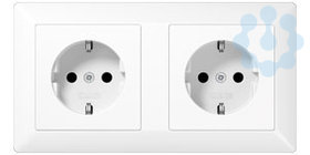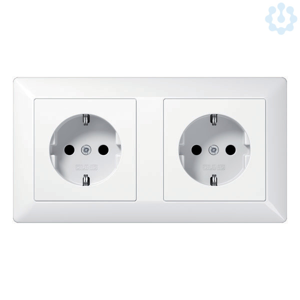 Kabelkanal-SCHUKO®-Steckdose, 2fach, 16 A 250 V ~, ohne Krallen, Thermoplast, Serie AS, alpinweiß