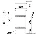 Kabelleiter gelocht, mit VS Sprosse 60x300x3000 Stahl bandverzinkt