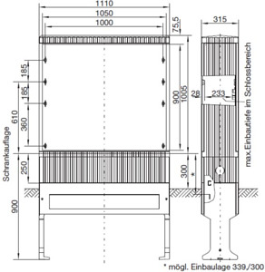 Kabelverteilerschrank Gr.2/1005, mit Montageplatte, 1005x1110x315mm (HxBxT)