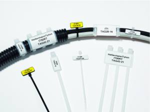 Kennzeichnungskabelbinder aus Polyamid 6.6. Zur einfachen Kennzeichnung bei gleichzeitiger Bündelung. Direkte Beschriftung vor Ort oder nach der Verarbeitung (Stifte T82S-BK/T82R-RD). Zusätzlich große Auswahl an passenden Etiketten für Thermotransferbedruckung erhältlich. Diese Kabelbinder eignen sich zur zeitsparenden Kennzeichnung während und nach der Montage von Kabelbäumen.