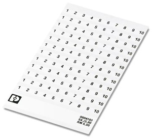 Kennzeichnungskarte, selbstklebend, längs bedruckt mit den fortlaufenden Zahlen: 51 ... 60, 10-teiliger Kennzeichnungsstreifen mit 12 gleichen Dekaden, weiß, für Klemmenbreite: 5 mm