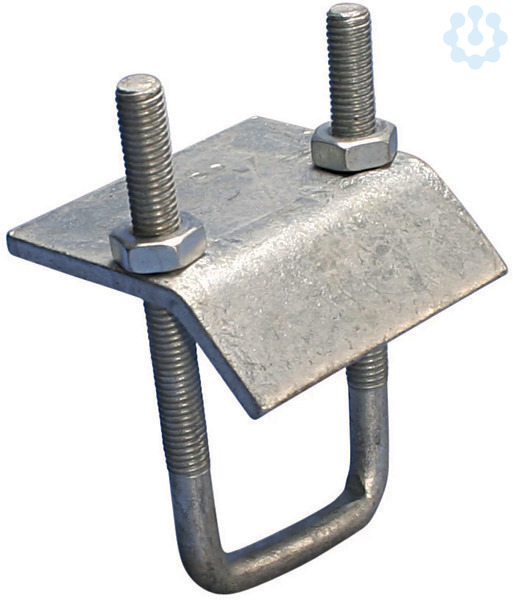Trägerklammer zur Befestigung von Montageschienen an Stahlkonstruktionen, mit Öffnung in beliebiger Richtung. Feuerverzinkte Stahlträgerklammer für Strutschienen mit Bügelschraube, für 41 mm breite und 21 bis 41 mm tiefe Schienen.