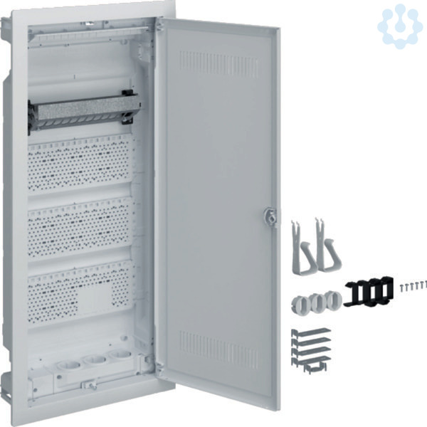 Mit dem VU48WWH präsentiert einen Multimedia-Kleinverteiler für die Unterputzmontage. Mit 4 Reihen und geschlitzter Kunststofftür, Schutzart IP30 und zertifiziert nach DIN VDE 61439-3 eignet er sich perfekt für Elektroinstallationen im Innenraum. Mit Patchpanel und isolierter DIN-Hutschiene zur Integration verschiedener Kommunikationsmodule und 90° schwenkbarer, 3fach-Schutzkontakt-Steckdose bietet der VU48WWH höchste Performance und das in gewohnter Hager-Qualität.
