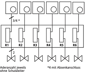 Verteilerleiste zum Verdrahten von Stellantrieben mit Raumtemperaturreglern. Dieses Gerät dient der Verdrahtung von Temperaturreglern und elektrothermischen Stellantrieben in Verbindung mit Warmwasser-Fussbodenheizungen. Mit dieser Verteilerleiste (in Verbindung mit Temperaturreglern) kann die Temperatur von bis zu 6 Räumen (Zonen) unabhängig voneinander geregelt werden. Steckerfertig, zum sofortigen Anschluss an eine 230 V-Steckdose. Für 230VAC Stellantriebe und Regler. Einfache Verdrahtung ohne Schraubendreher. Mit Hutschiene für Wandbefestigung. Schaltleistung max. 14 Stellantriebe a 3W.