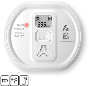 10-Jahres-Kohlenmonoxidwarnmelder mit elektrochemischem Sensor und LCD-Display, fest eingebaute 3V-Lithiumbatterie, funkvernetzbar mit Funkmodul Ei200MRF (separat erhältlich), elektrochemischer Sensor einzeln in CO-Umgebung kalibriert und getestet, Test-/ Stummschaltknopf, Ereignisspeicher, AudioLINK-Funktion, Status-LEDs (Betrieb, Alarm, Störung), geprüft und zertifiziert nach EN 50291 Teil 1 und 2, 5 Jahre Garantie, 10 Jahre Lebensdauer